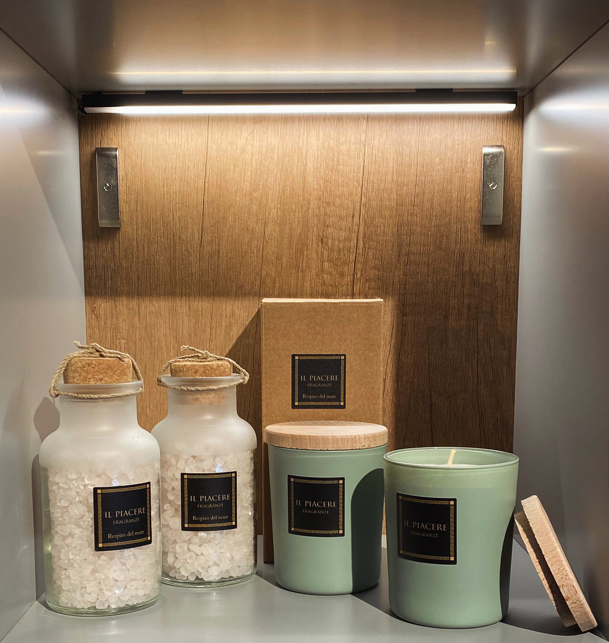 Fragranza avvolgente come la brezza marina grazie al legno di Cedro, al mirto, al sale e alle alghe.